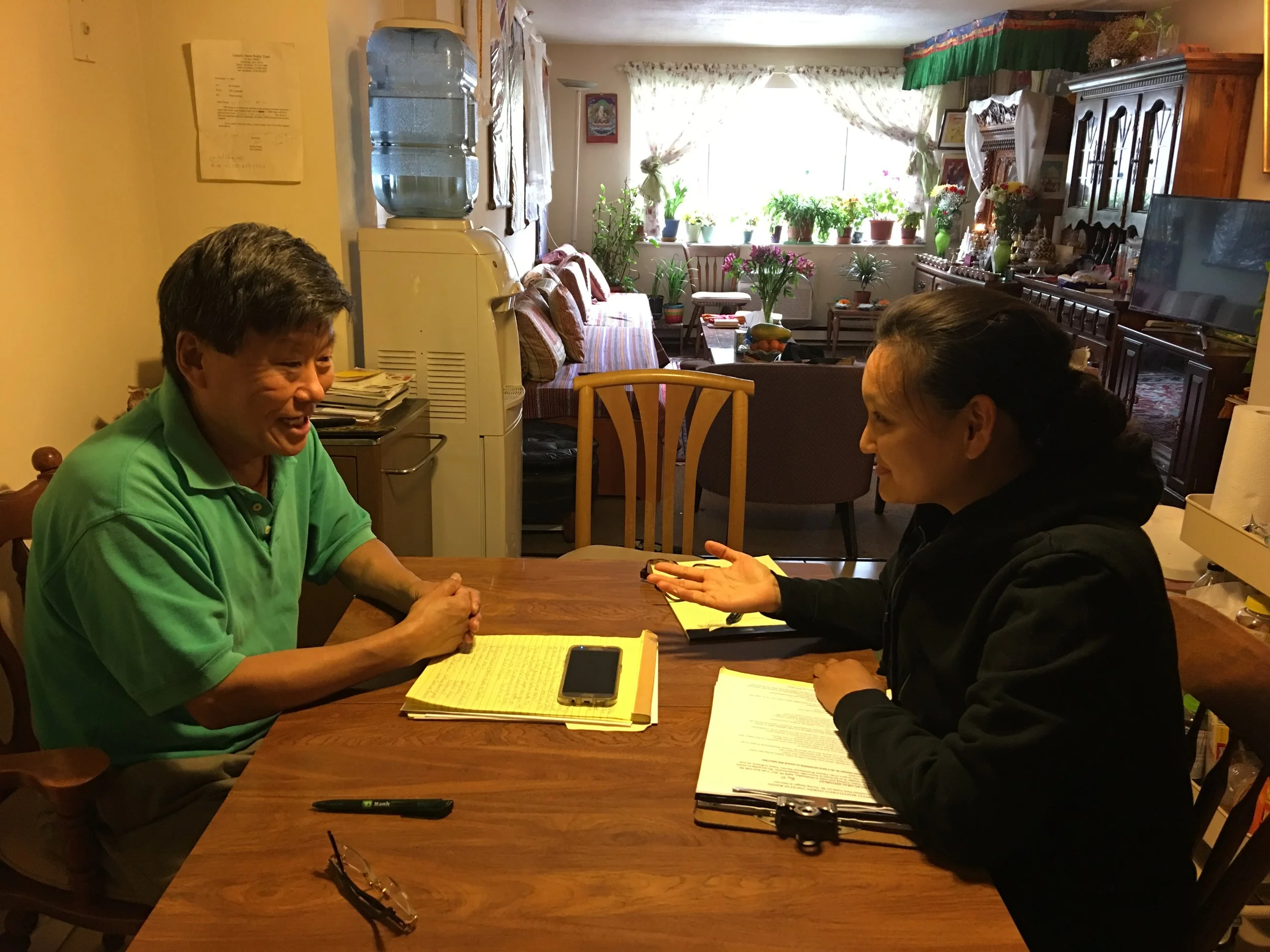 After intensive training in oral history skills, we recorded each of these stories in the homes and work places of the elder members of our Tibetan community. There, we asked questions, listened to responses, and had conversations about the experience of leaving home and finally resettling in the USA. Most of our narrators chose to hold these interviews in Tibetan, and their words have been translated into English by a member of our group living in Bangalore. Every interview has been transcribed in English, so we are able to offer written and audio narratives in both languages to current and future generations.